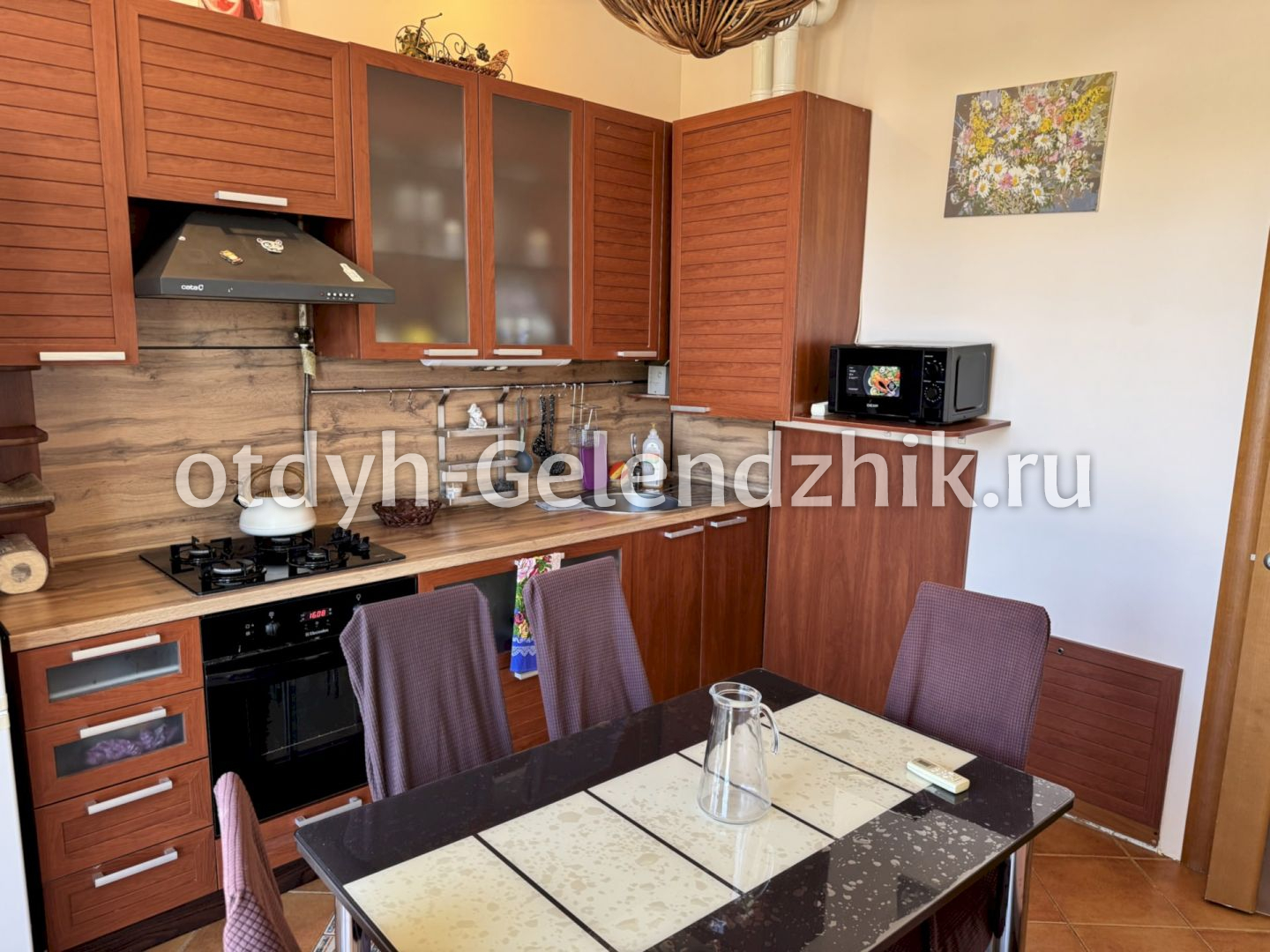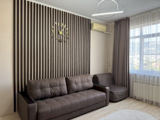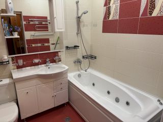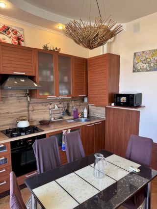 Уютная квартира в центральной части курорта — всего 6 минут пешком до набережной и центрального песчаного пляжа. Тихий двор, закрытая территория с парковкой и качелями, лифт в доме, супермаркет «Перекрёсток» и кафе прямо под окнами.