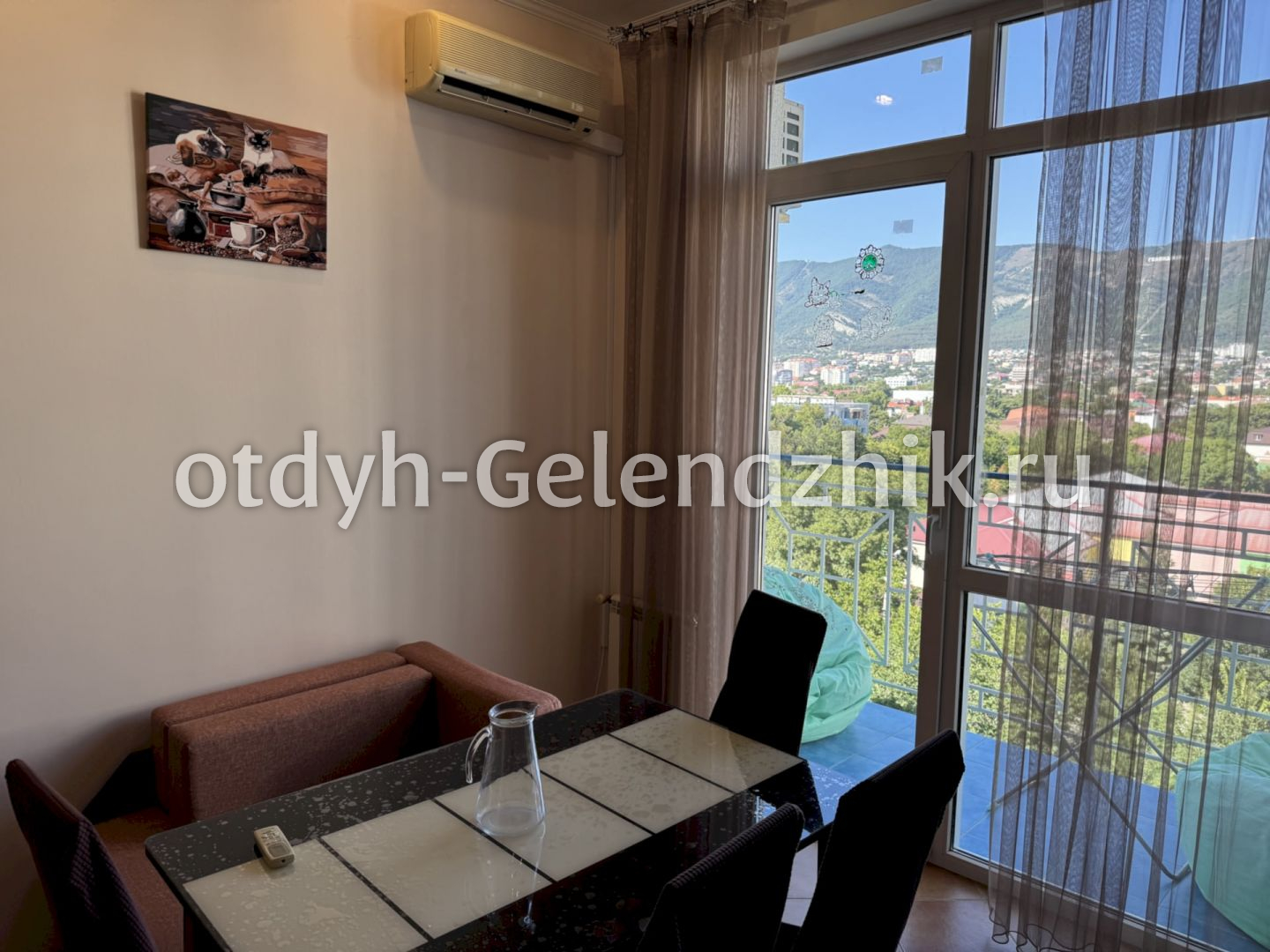 Квартира находится в центре курорта. Ближайшая остановка — «Городская поликлиника», в 260 м. До центрального пляжа — всего 6 минут пешком (500 м). От автовокзала — 10 минут на такси, от аэропорта — 25 минут.