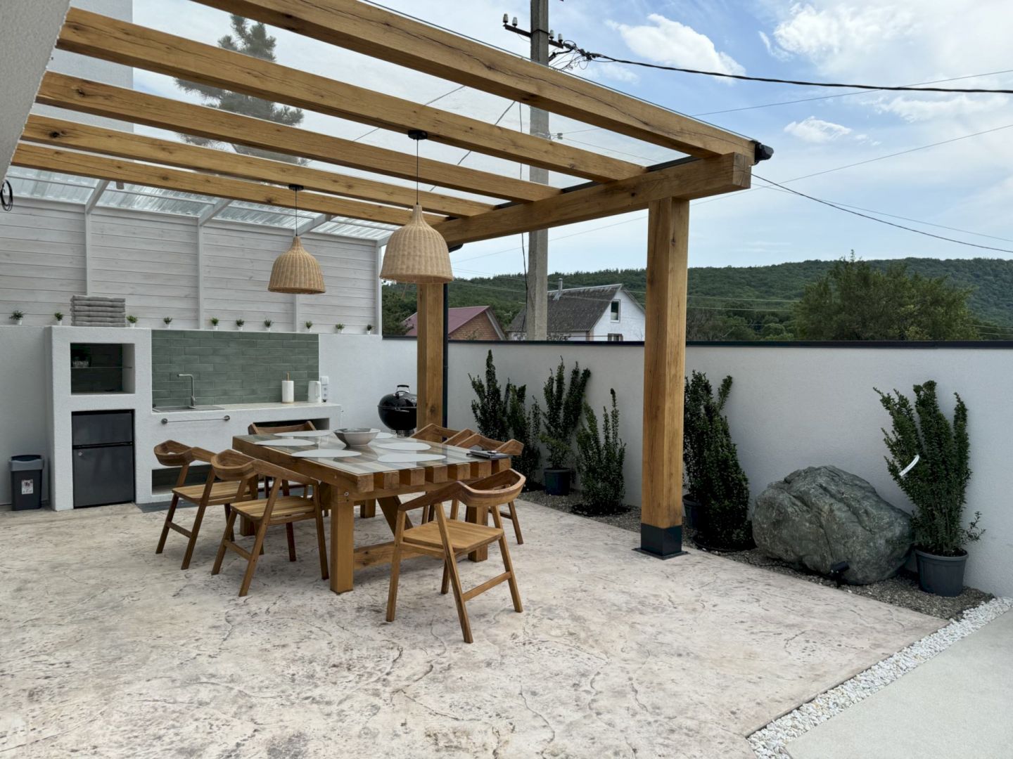 Барнхаус с террасой, бассейном и мангалом на территории